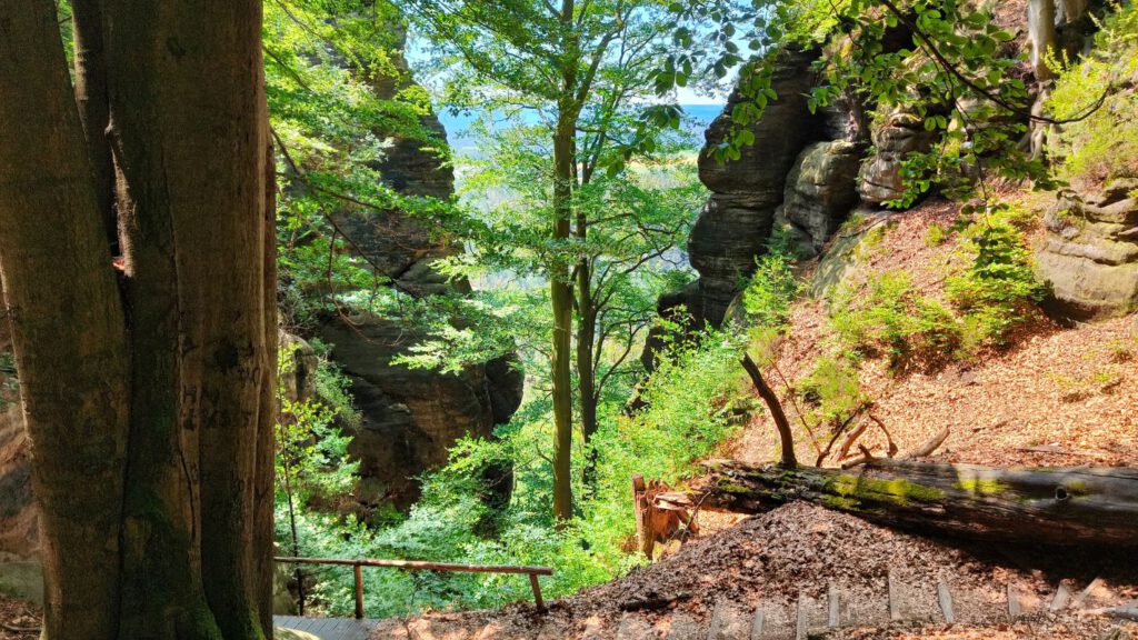 ✅ Schrammsteine – Indrukwekkende rotsformaties waar je over spannende ladders en trappen klimt.