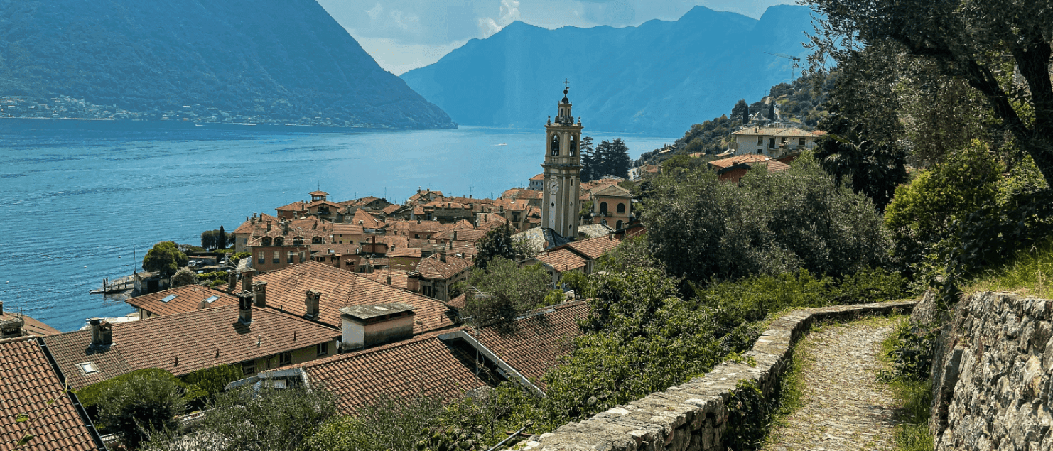 Dit is de finish van je route en misschien ook wel het leukste stukje van de hele route. Vanuit Sala Comacina moet je een flink stuk bergopwaarts lopen. Eenmaal boven heb je een mooi uitzicht over dit stadje en het meer. Waarschijnlijk is dit het plekje waar je graag een foto wil maken. De bekende foto van de Greenway die je overal ziet, is hier gemaakt. Op de top van Sala Comacina zie je het mooie pad met onkruid met op de achtergrond het uitsteken van de kerktoren van dit dorpje en het Comomeer. Alles samen maakt dit de perfecte shot.