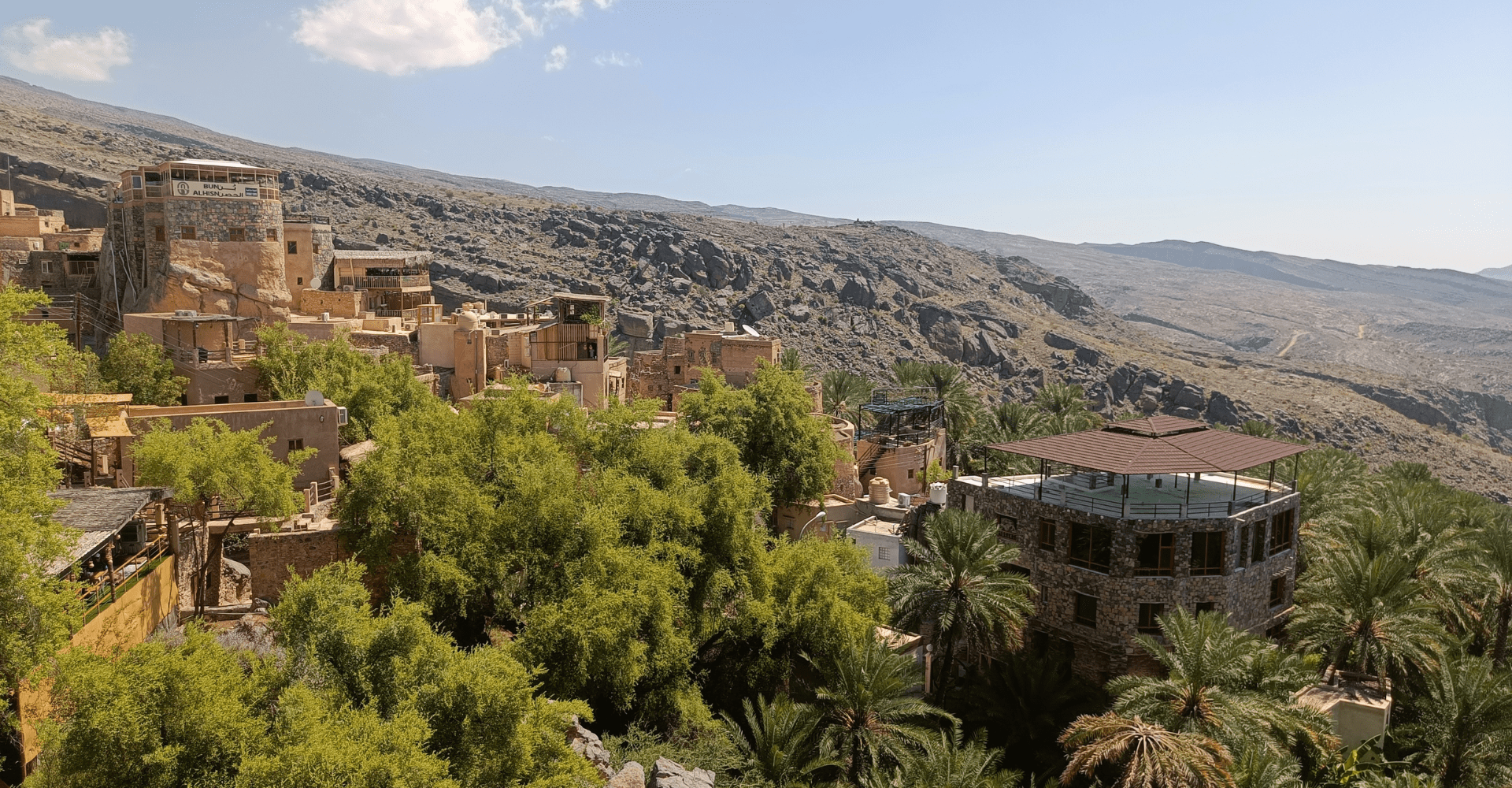 Misfat al Abriyeen, ook wel Misfah al Abriyyin genoemd, is meer dan duizend jaar oud. In het oude dorp loop je langs lemen huizen, smalle paadjes en terrassen vol dadelpalmen, vijgen en granaatappels. De falaj, het traditionele irrigatiesysteem, zorgt al eeuwen voor vruchtbare plantages. Terwijl veel bewoners naar het nieuwe deel van het dorp verhuisden, hebben jonge generaties de oude huizen gerestaureerd en omgetoverd tot guesthouses en cafés. Zo blijft het erfgoed springlevend.